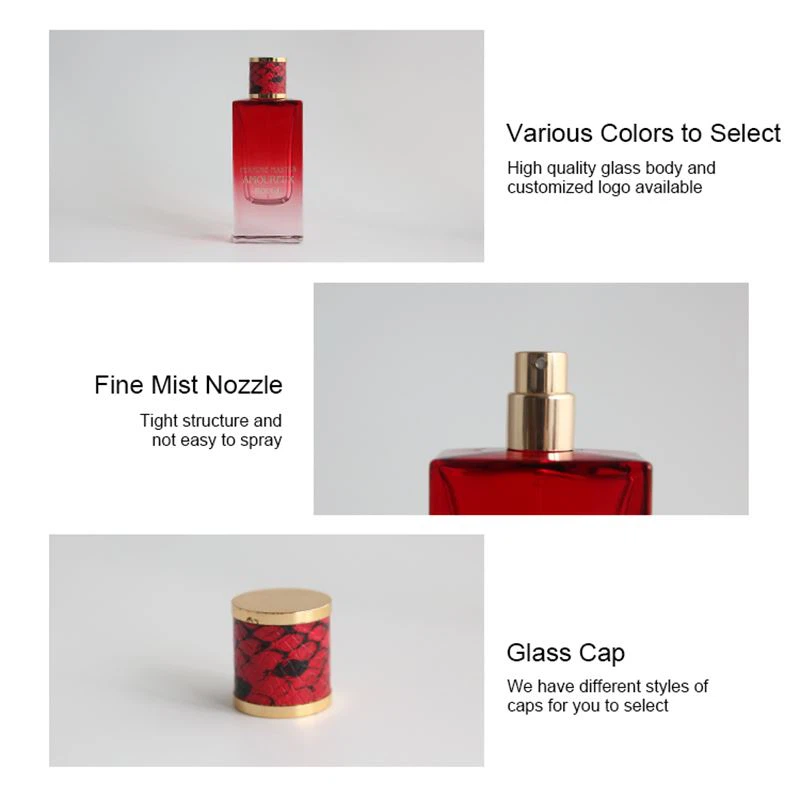 La mida específica d'aquestes ampolles de perfum agradable és L 53,24 × W 34,63 × H 104,06 mm, el seu pes net és de 353,7 g i el seu pes net és de 65 ml. El color és vermell, marró i blanc, però acceptem qualsevol color personalitzat. El nostre tap és d'estructura ajustada i no és fàcil de ruixar. Al mateix temps, no només tenim una varietat de colors per triar, sinó que també es pot canviar la textura del tap.